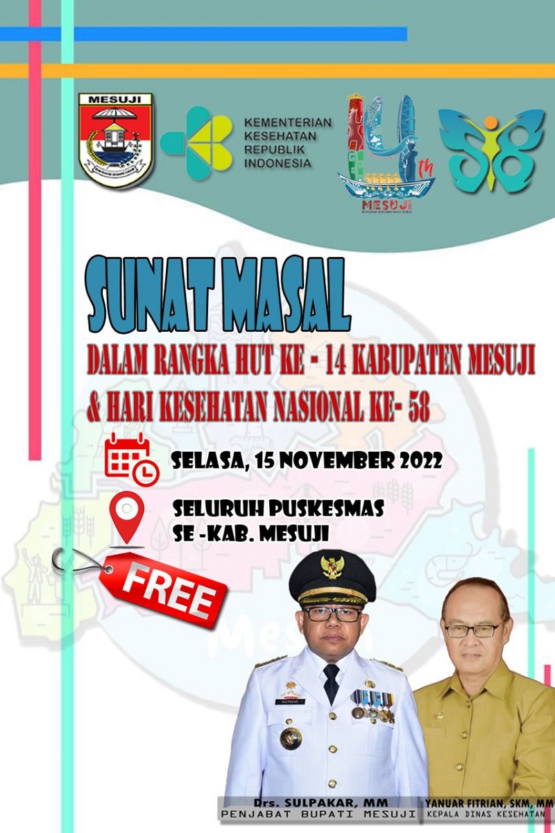 Acara sunatan massal dan pelayanan KB yang dilaksanakan Selasa,15/11/2022 ini, serentak di seluruh Puskesmas se-Kabupaten Mesuji tanpa dipungut biaya/gratis