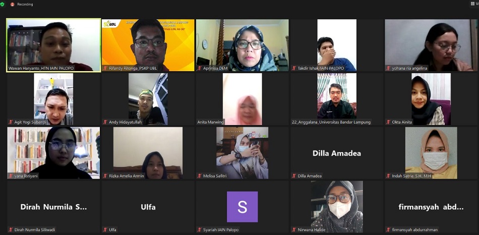 Kondisi pandemi tidak jadi halangan untuk terus maju membentuk kreasi wadah keilmuan, terbukti kunjungan pendalaman kelembagaan yang dilakukan secara virtual oleh dosen Fakultas Syariah konsentrasi Hukum Tata Negara IAIN Palopo, yang dipandu oleh Wawan Heryanto salah seorang dosen IAIN Palopo, membuka diskusi kunjungan virtual dengan awalan pembukanya “Kenapa PSKP-UBL menjadi tujuan riset mini untuk pembentukan pusat studi sejenis di IAIN Palopo?, tentu kami memilih PSKP-UBL karena dari aktivitas yang dilakukan oleh PSKP-UBL yang sangat banyak dan menarik untuk kami ketahui dalam kegiatan kami nantinya, ujar modertor.