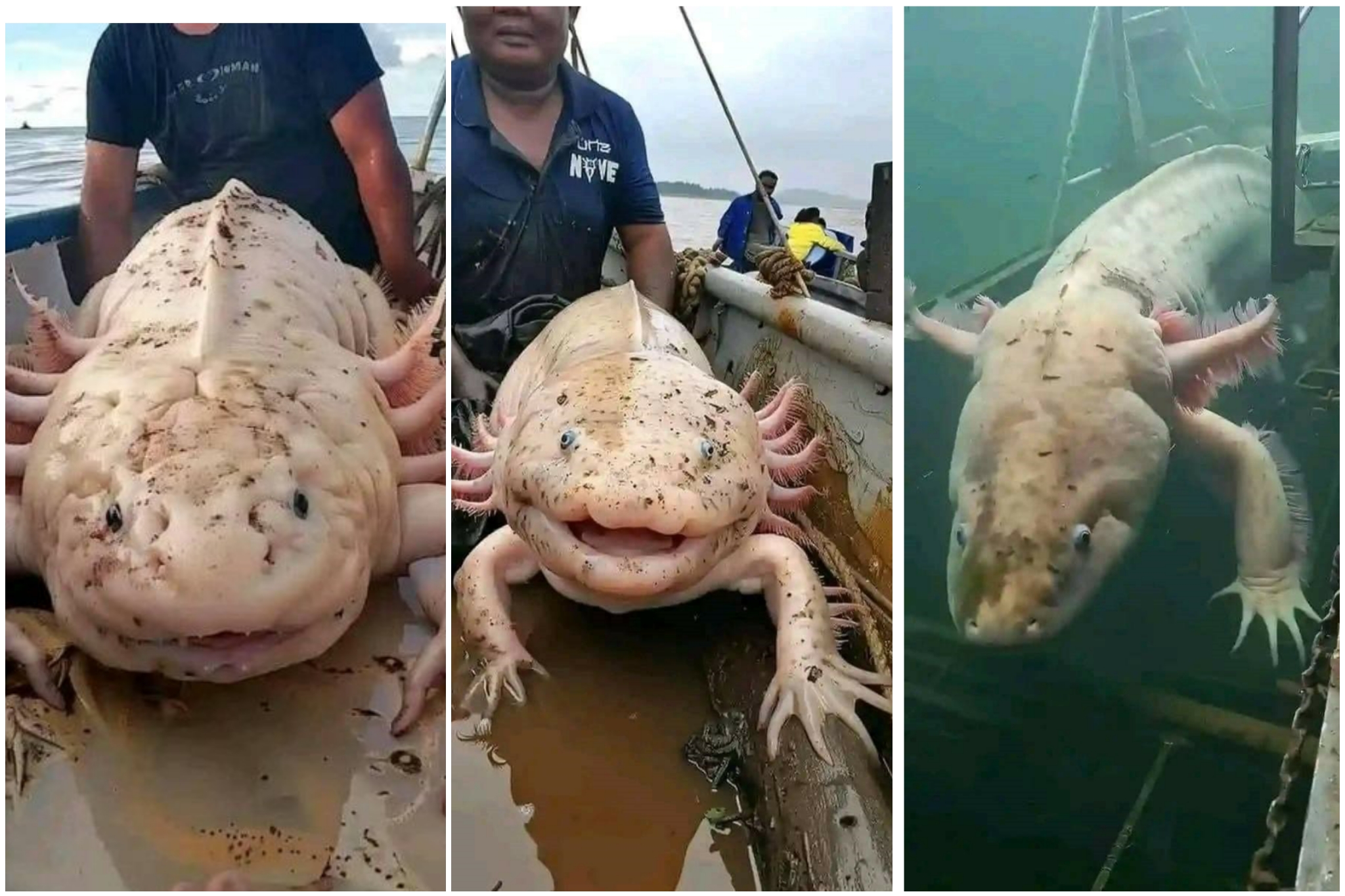 Foto yang beredar memperlihatkan seekor makhluk aneh dengan empat kaki, masing-masing memiliki empat jari. Hewan tersebut berwarna putih dan mirip dengan kadal atau amfibi. Dalam unggahan tersebut, pemilik akun Facebook menyatakan, “Nelayan Papua menangkap hewan yang belum pernah terlihat sebelumnya.”