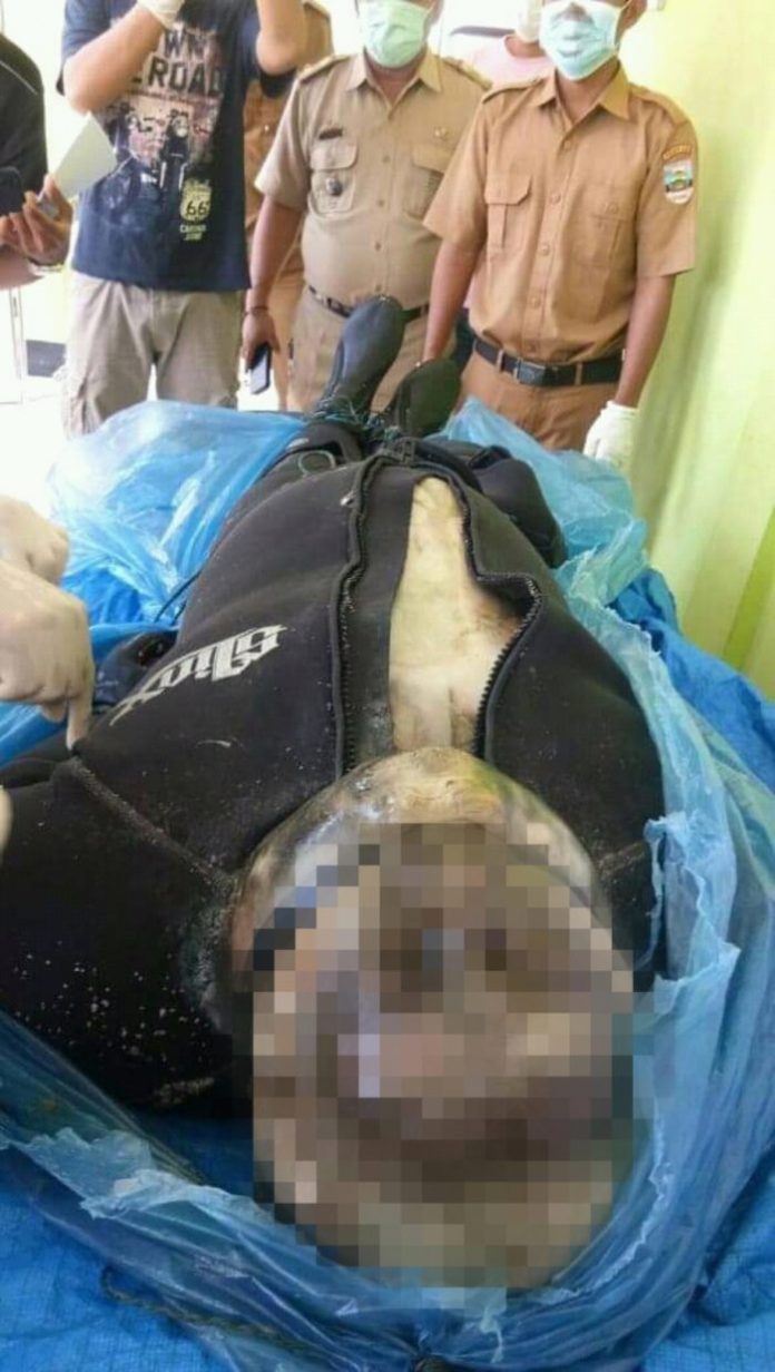 Kondisi mayat ditemukan dalam keadaan mengapung dan masih memakai perlengkapan alat menyelam yang masih menempel di tubuh korban.