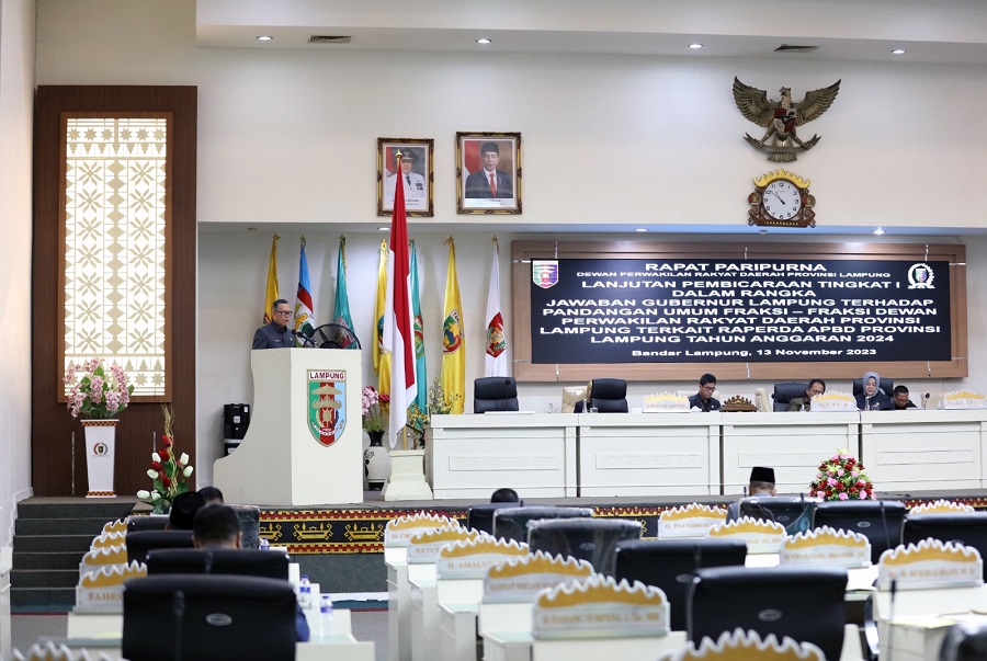 Gubernur Arinal Sampaikan Jawaban terhadap Pemandangan Umum DPRD atas Raperda APBD Provinsi Lampung 2024