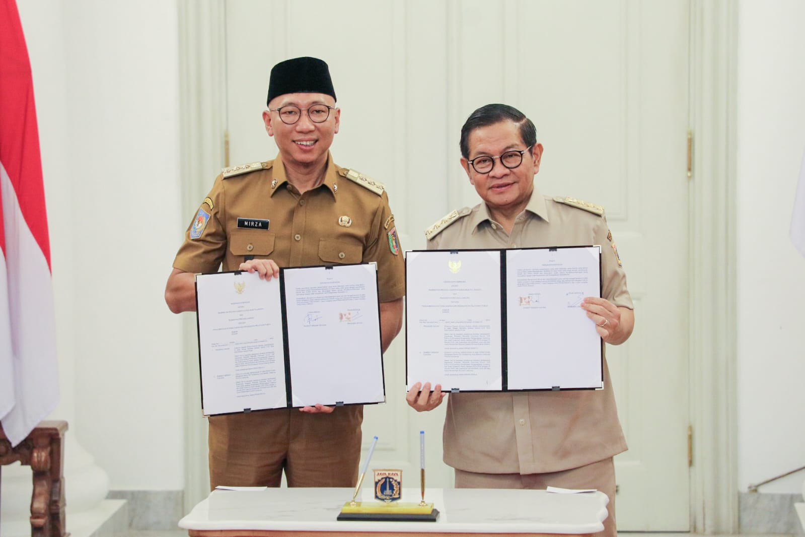 Penandatanganan kerja sama itu berlangsung di Balai Kota Pemerintah Provinsi DKI Jakarta, Kecamatan Gambir, Jakarta Pusat, Selasa (15/4/2025) dengan disaksikan oleh Sekretaris Jenderal Kementerian Dalam Negeri (Sekjen Kemendagri) Tomsi Tohir.