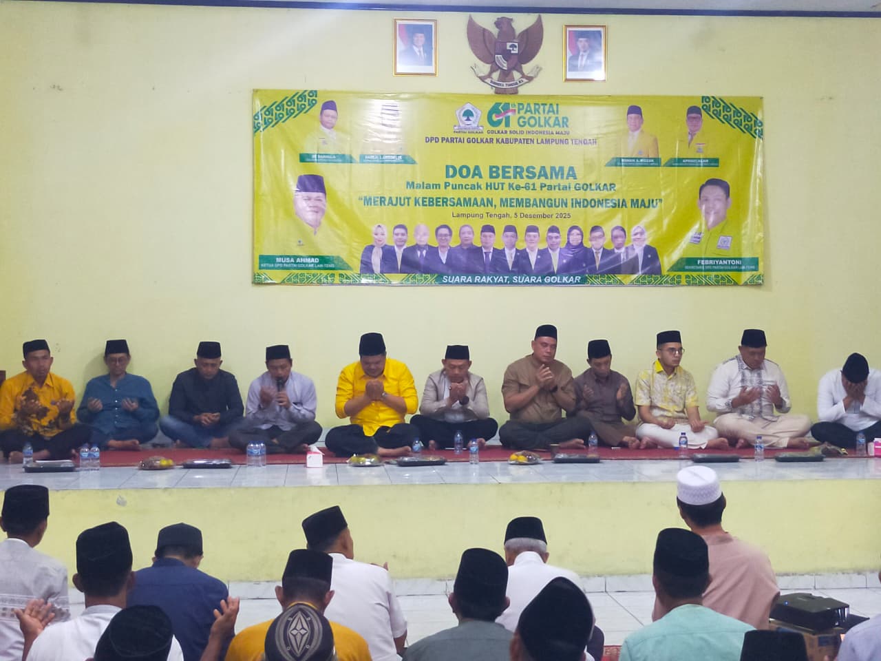 HUT ke-61 Partai Golkar, DPD II Lampung Tengah Gelar Doa Bersama dan Serukan Kebersamaan Kader