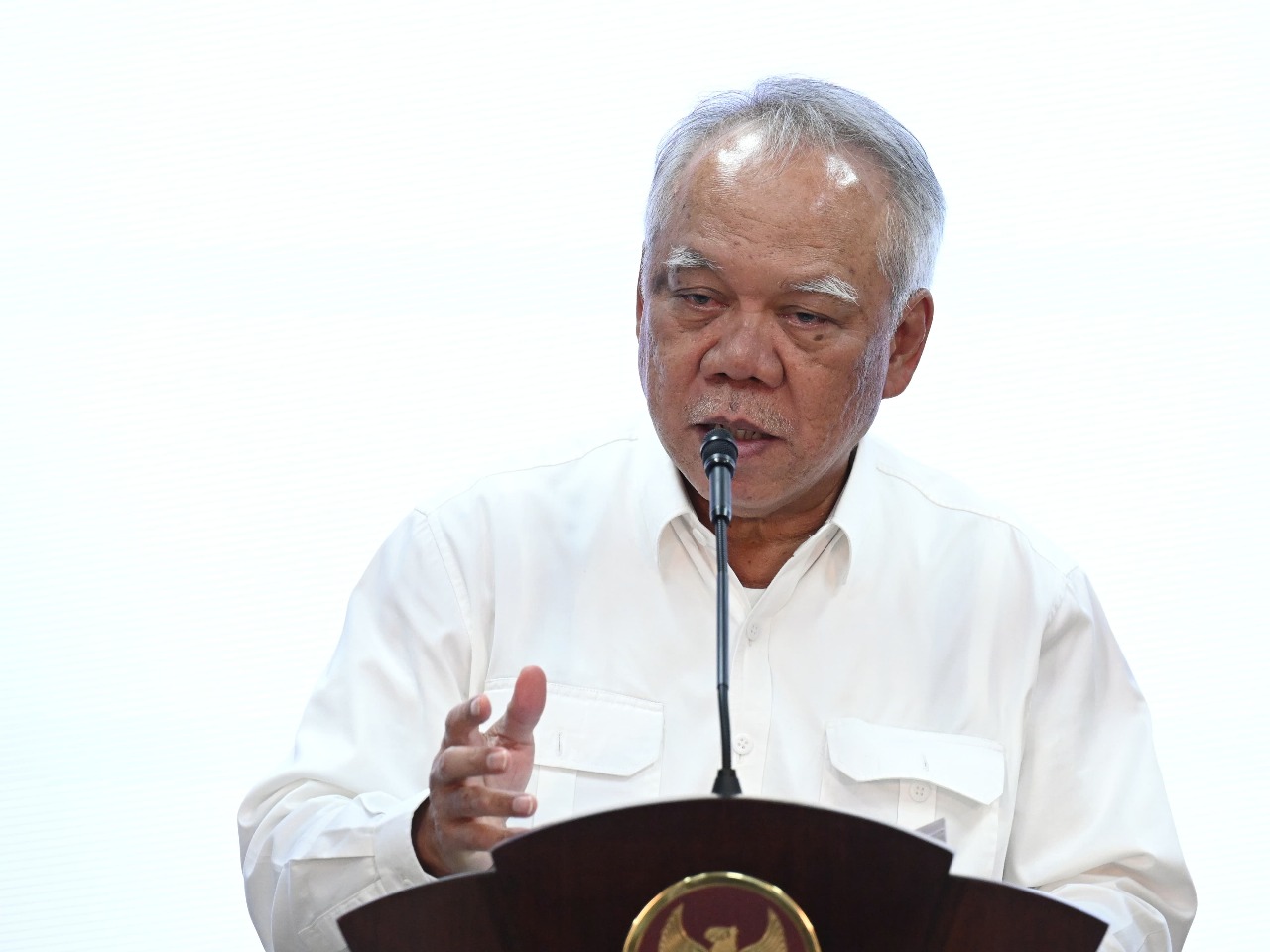 Kepala OIKN Basuki Hadimuljono saat konferensi pers usai ratas terkait Ibu Kota Negara, pada Selasa (21/01/2025) di Istana Presiden, Jakarta. (foto: ikn)