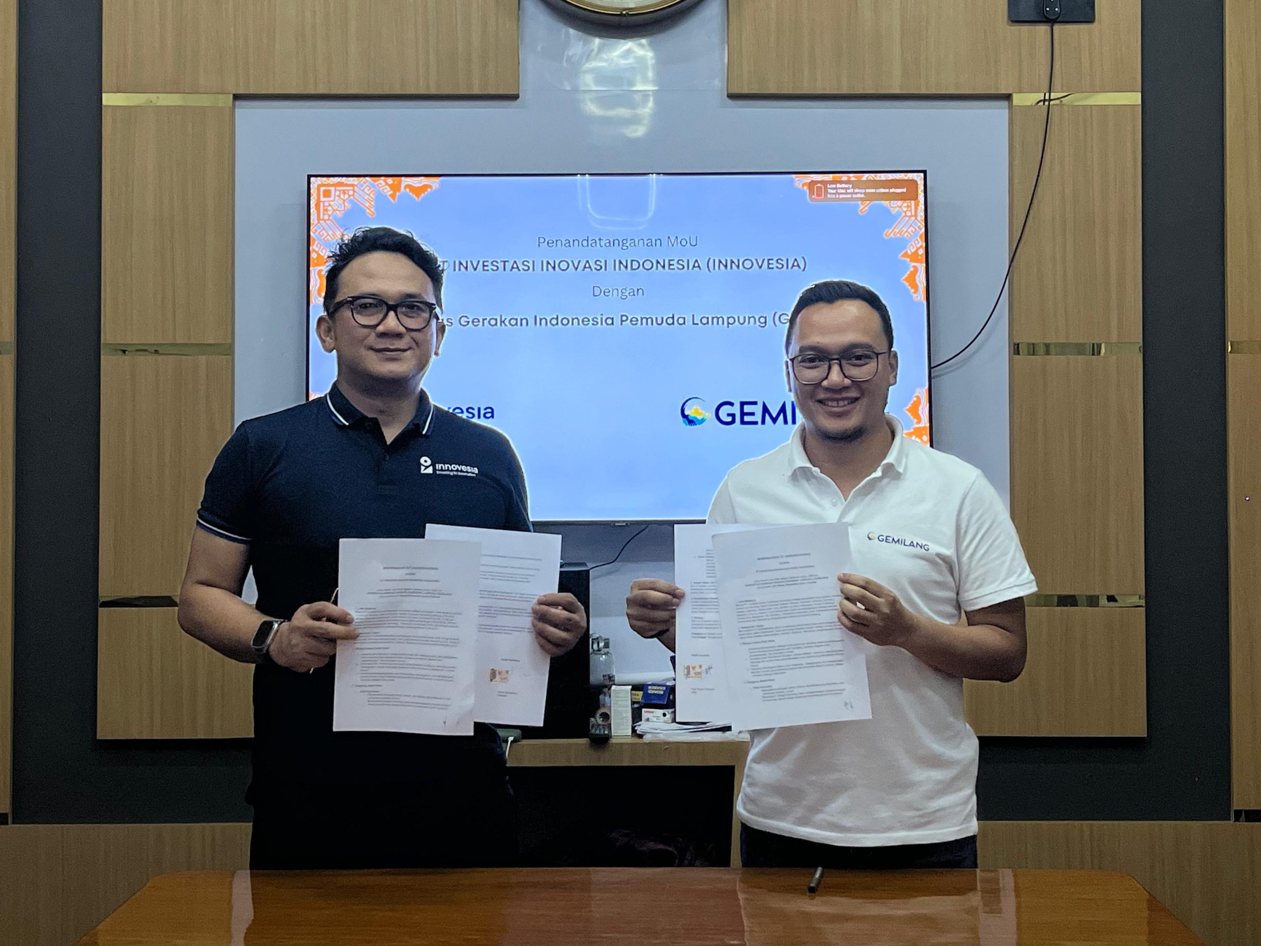 Gantanews.co – PT Investasi Inovasi Indonesia (Innovesia) dan Komunitas Gerakan Pemuda Indonesia Lampung (Gemilang) secara resmi menandatangani Memorandum of Understanding (MoU), memulai kerjasama yang bertujuan untuk mengakselerasi inovasi dikalangan pemuda di Provinsi Lampung. Acara penandatanganan berlangsung di Bandar Lampung, dihadiri oleh CEO Innovesia, Fiter Bagus Cahyono, dan Founder Gemilang, Gilang Ramadhan.