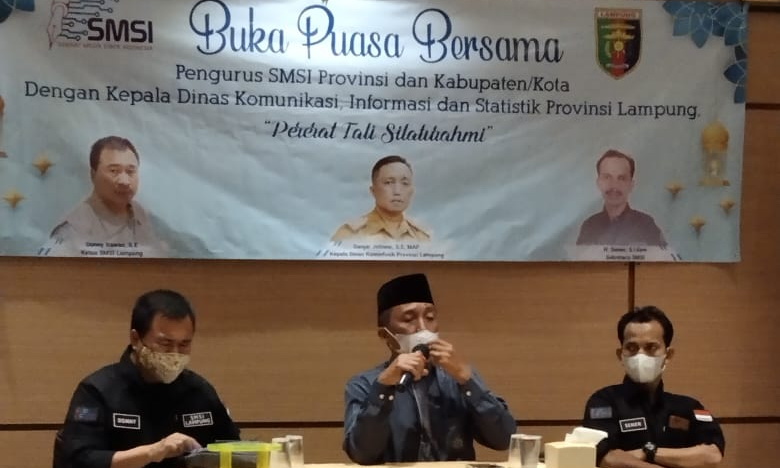 Demikian diungkapkan Kepala Dinas Komunikasi, Informatika dan Statistik Provinsi Lampung Ganjar Jationo S.E, MAP, saat menggelar buka puasa bersama pengurus Serikat Media Siber Indonesia (SMSI) provinsi dan kabupaten kota se Provinsi Lampung dengan Kepala Dinas Komunikasi, Informasi dan statistik Provinsi Lampung di De Green Hotel Bandar Lampung, Sabtu (1/5/2021).