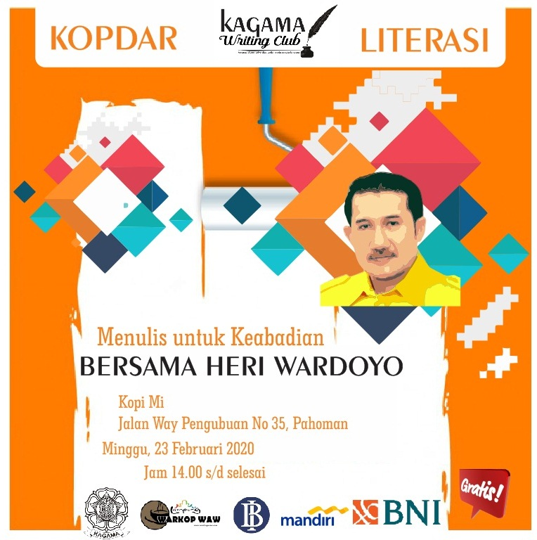 Walau ditaja oleh Kagama, kopdar literasi ini terbuka untuk umum dengan mengundang kantung-kantung komunitas literasi di Bandarlampung. Edisi “Menulis untuk Keabadian bersama Heri Wardoyo” selain didukung oleh Kagama Lampung juga mendapat support dari Warkop WAW, Bank Indonesia, Bank Mandiri dan Bank BNI. (Rls)