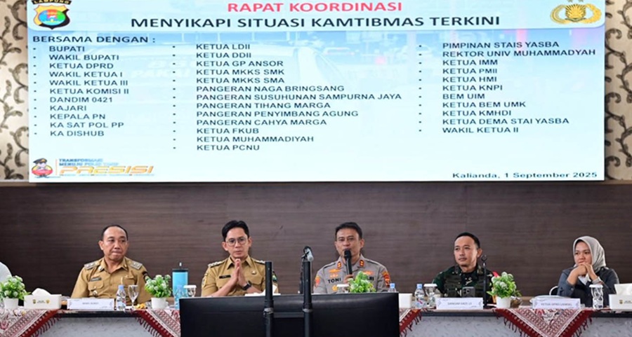 Rakor ini dihadiri Forkopimda Lampung Selatan, aparat keamanan, mahasiswa, tokoh adat, tokoh agama, serta elemen masyarakat lainnya. Seluruh pihak sepakat menjaga keamanan dan keselamatan sebagai prioritas utama, sembari tetap menghargai hak masyarakat dalam menyampaikan pendapat. (Kmf)