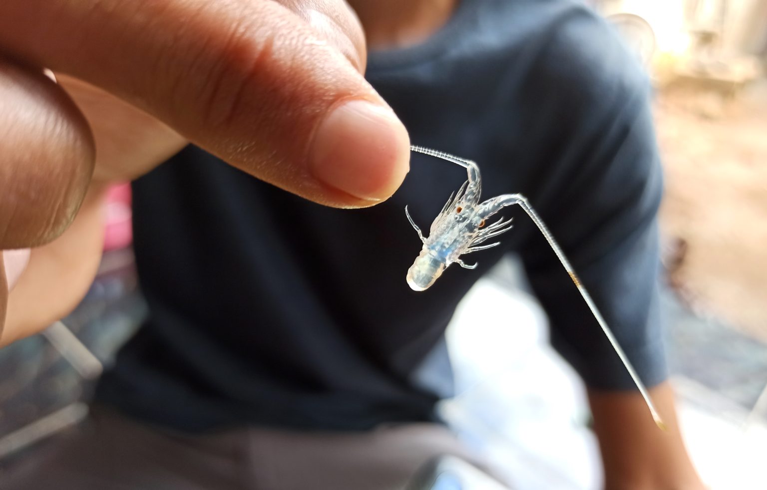 Seorang nelayan menunjukkan bibit bening lobster