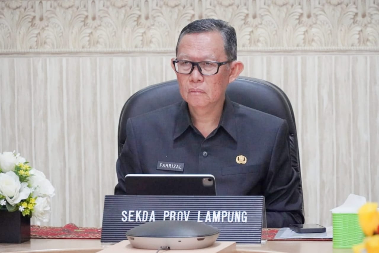 Gantanews.co – Sekretaris Daerah Provinsi Lampung Fahrizal Darminto, mengikuti Rapat Koordinasi Pengendalian Inflasi Daerah (virtual), di Ruang Command Center Lt.II Dinas Kominfotik Provinsi Lampung, Senin (25/3/2024).