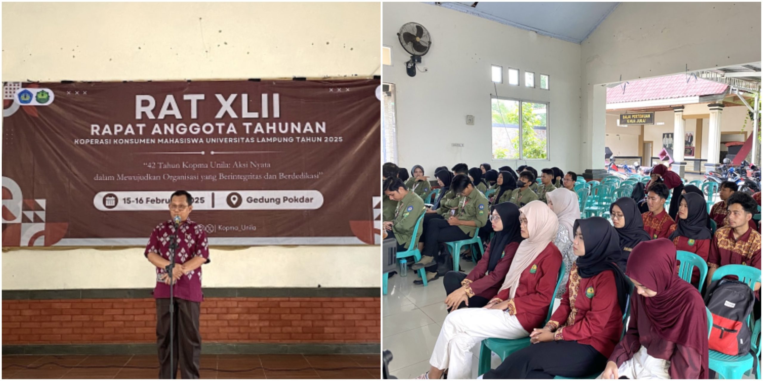 Gantanews.co – Koperasi Konsumen Mahasiswa (Kopma) Universitas Lampung (Unila) kembali menggelar Rapat Anggota Tahunan (RAT) pada 15-16 Februari 2025. Mengusung tema “42 Tahun Kopma Unila: Aksi Nyata dalam Mewujudkan Organisasi yang Berintegritas dan Berdedikasi”, kegiatan ini berlangsung di Gedung Pokdar Mitra Kamtibmas, Polresta Bandar Lampung.