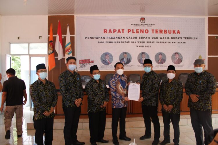 Ketua KPU Kabupaten Way Kanan Refki Dharmawan mengatakan, sesuai ketentuan Pasal 54 ayat (1) Peraturan Komisi Pemilihan Umum Nomor 9 Tahun 2018 tentang Rekapitulasi Hasil Penghitungan Suara dan Penetapan Hasil Pemilihan Gubernur dan Wakil Gubernur, Bupati dan Wakil Bupati, dan/atau Wali Kota dan Wakil Wali Kota, sebagaimana telah diubah dengan Peraturan Komisi Pemilihan Umum Nomor 19 Tahun 2020, Komisi Pemilihan Umum Kabupaten Way Kanan melaksanakan Rapat Pleno Terbuka untuk menetapkan Pasangan Calon Bupati dan Wakil Bupati Terpilih dalam Pemilihan Bupati dan Wakil Bupati Way Kanan Tahun 2020.