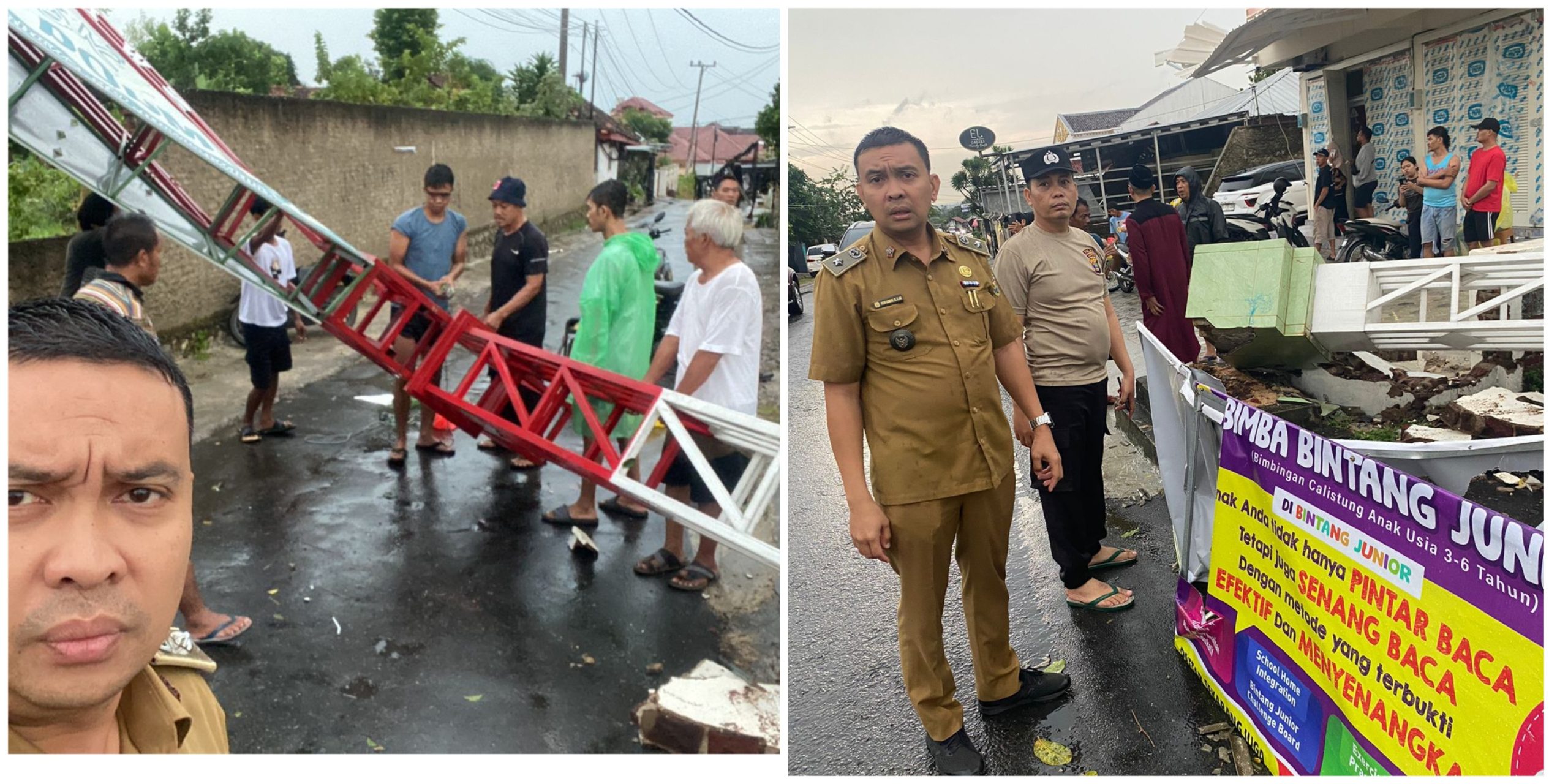 Menurutnya, sejumlah fasilitas umum dan rumah warga mengalami kerusakan, termasuk pos ronda yang roboh, gapura yang ambruk di Purnawirawan 4, serta genteng rumah warga yang beterbangan di Perumahan Griya Sejahtera.