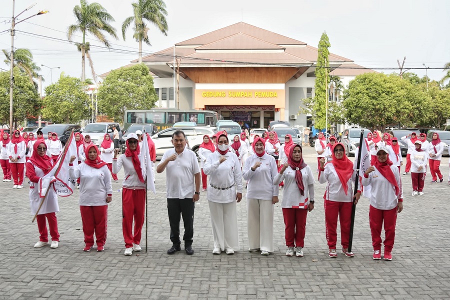 GANTANEWS.CO, BANDARLAMPUNG — Wakil Ketua Bidang Pengembangan Dana Yayasan Jantung Indonesia (YJI) Cabang Lampung Mamiyani Fahrizal, disaksikan Ketua YJI Cabang Lampung Ibu Riana Sari Arinal, mengukuhkan beberapa Klub Jantung Sehat (KJS) baru di Lapangan PKOR Way Halim, Bandarlampung, Sabtu (11/11/2023). Pengukuhan ini dilakukan dalam rangkaian HUT YJI ke-42.
