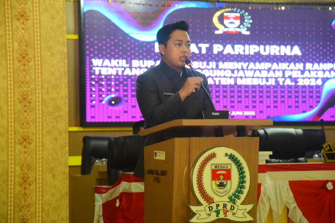 Gantanews.co – Pemerintah Kabupaten Mesuji secara resmi menyampaikan Rancangan Peraturan Daerah (Ranperda) tentang Pertanggungjawaban Pelaksanaan Anggaran Pendapatan dan Belanja Daerah (APBD) Tahun Anggaran 2024 dalam Rapat Paripurna DPRD Kabupaten Mesuji, Rabu (18/6/2025).