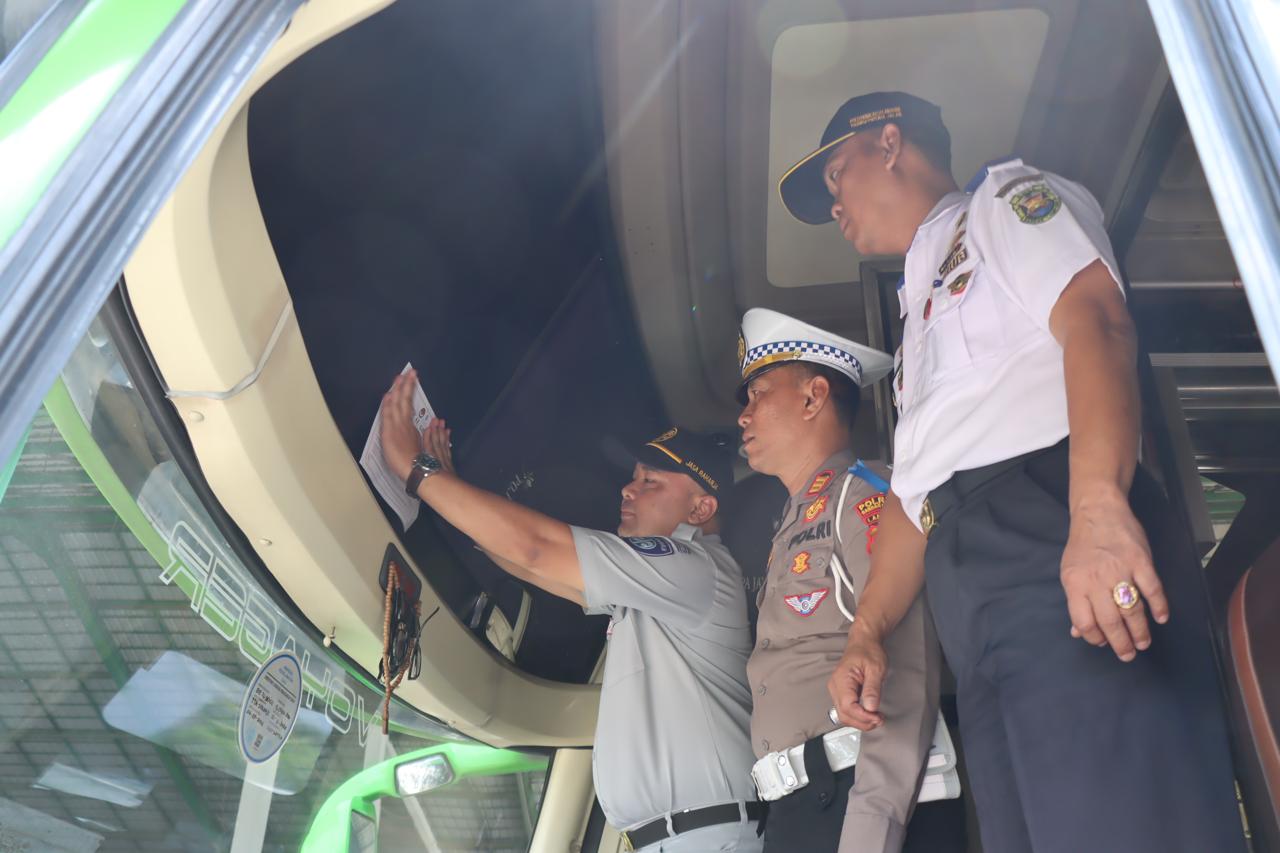 Operasi Keselamatan Krakatau 2025: Polisi Periksa Kelayakan Bus Penumpang di Bandar Lampung
