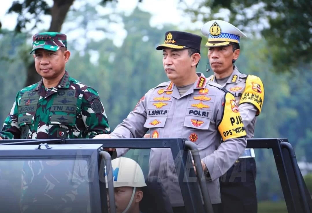 Gantanews.co – Kapolri Jenderal Polisi Drs. Listyo Sigit Prabowo, M.Si., dan Panglima TNI Jenderal TNI H. Agus Subiyanto, S.E., M.Si., memimpin Apel Gelar Pasukan Operasi Ketupat 2024 di Silang Monas, Jakarta Pusat. Apel yang dihadiri oleh personel TNI, Polri, dan instansi terkait bertujuan untuk mengecek kesiapan personel gabungan dalam mengamankan arus mudik Lebaran 2024.