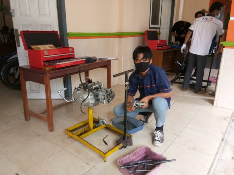 “Iya. Memang kita langsung praktek bagaimana caranya membongkar mesin, memasang dan memahami kerusakan yang ada di dalam mesin. Supaya nantinya anak-anak yang sudah lulus sudah siap kerja,” katanya.