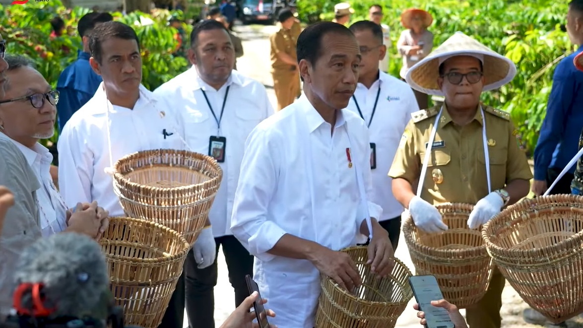 Namun, ada pemandangan yang unik saat Presiden Jokowi memanen kopi di kebun milik Syafrudin. Presiden terlihat mengenakan kinjar, sebuah bakul yang terbuat dari rotan, yang berfungsi sebagai wadah untuk menampung buah kopi saat panen. Kinjar ini sangat penting dalam proses pemetikan kopi secara manual, mirip dengan bakul yang dibuat dari anyaman rotan, bambu, dan plastik.