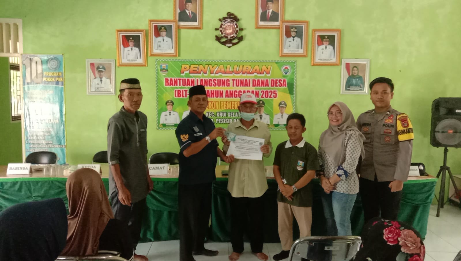 Gantanews.co — Pemerintah Pekon Pemerihan, Kecamatan Krui Selatan, Kabupaten Pesisir Barat, menyalurkan Bantuan Langsung Tunai Dana Desa (BLT DD) tahap pertama dan kedua untuk Tahun Anggaran 2025 kepada 20 Keluarga Penerima Manfaat (KPM), Jumat, 13 Juni 2025.