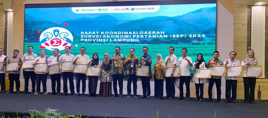 Penghargaan tersebut diserahkan langsung Kepala Badan Pusat Statistik (BPS) Provinsi Lampung, Atas Parlindungan Lubis, dalam Rapat Koordinasi Daerah Survei Ekonomi Pertanian 2024, yang digelar di Swiss-Belhotel, Bandar Lampung, Rabu (16/10/2024).