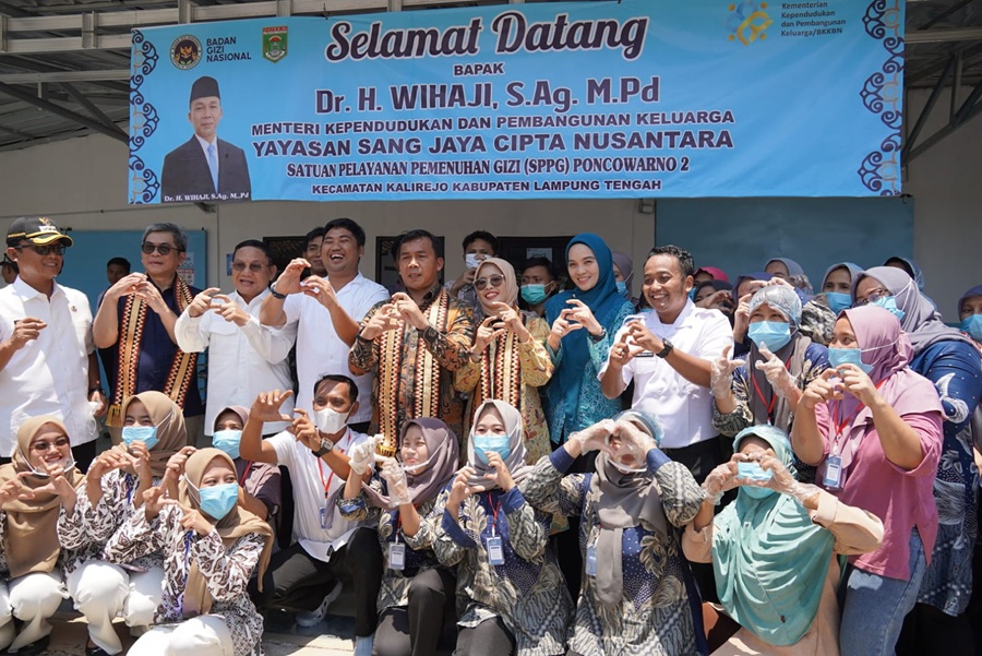 Pada kegiatan tersebut, Kadis Dukcapil Provinsi Lampung, Lukman, dan Ketua 1 TP PKK Provinsi Lampung Agnesia Bulan Marindo, mendampingi Menteri BKKBN meninjau Satuan Pelayanan Pemenuhan Gizi (SPPG) Poncowarno 2, dan lokasi renovasi rumah tidak layak huni di desa Poncowarno, Kecamatan Kalirejo, Lampung Tengah. (KMF).