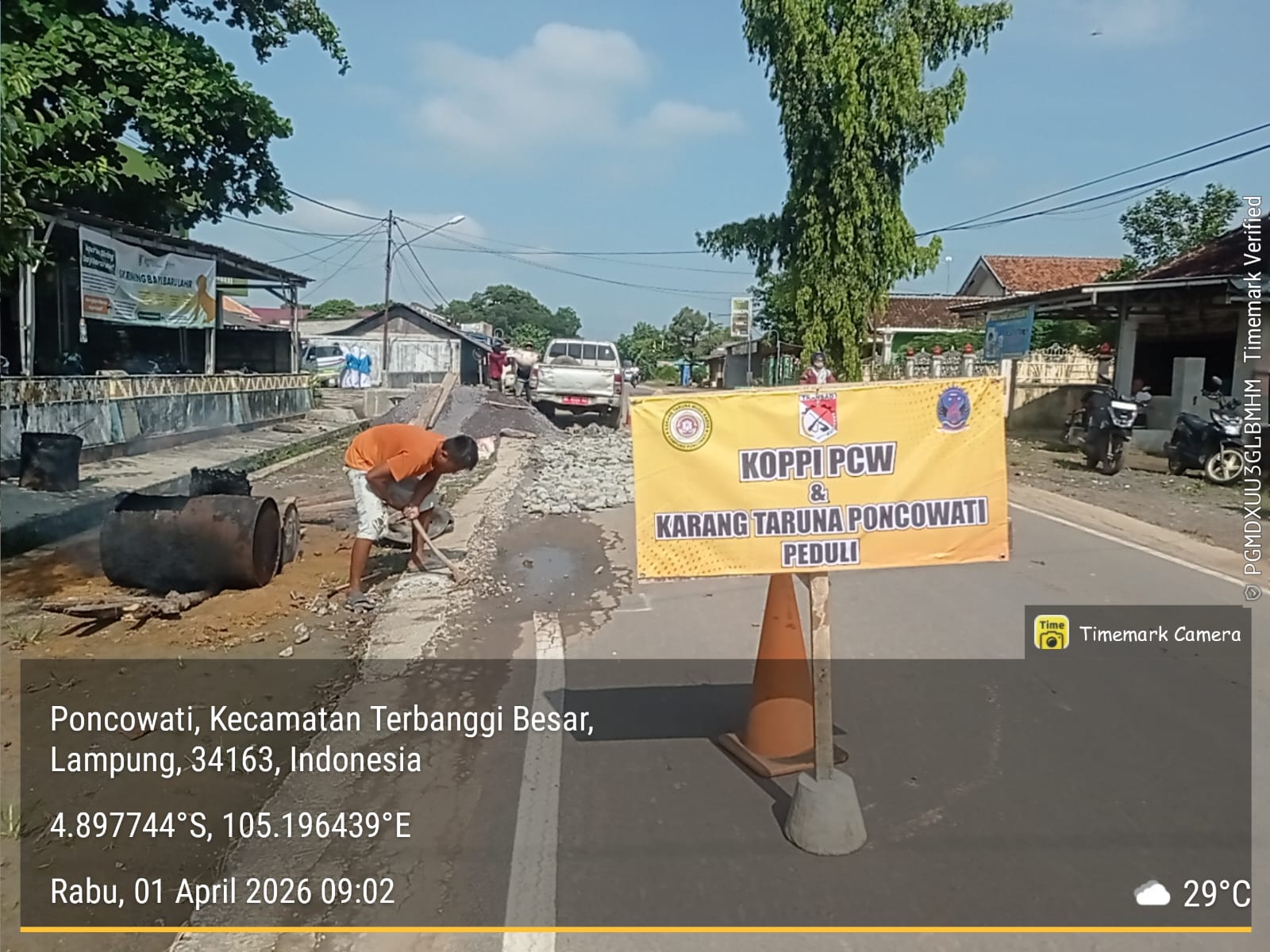 Gantanews.co – Kondisi jalan berlubang yang membahayakan pengguna jalan di Kampung Poncowati akhirnya memicu aksi nyata dari para pemuda setempat. Tanpa menunggu perbaikan dari pemerintah daerah, Komunitas Pemuda Pemudi Poncowati (KOPPI PCW) bersama Karang Taruna “Muda Karya” turun langsung melakukan tambal sulam jalan secara swadaya.