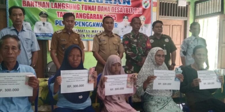 Gantanews.co — Pemerintah Pekon Penggawa V Ilir, Kecamatan Way Krui, Kabupaten Pesisir Barat, menyalurkan Bantuan Langsung Tunai Dana Desa (BLT-DD) Tahap I Tahun 2025 kepada 23 Keluarga Penerima Manfaat (KPM), Senin (30/6/2025).