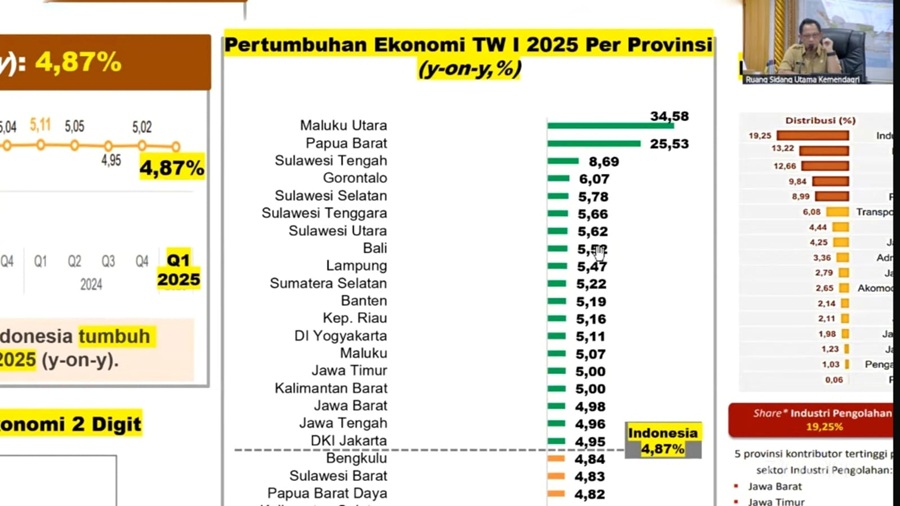 Tito menjelaskan bahwa pertumbuhan ekonomi Indonesia pada Kwartal I tahun 2025 (y-on-y) berada pada angka 4.87 persen, angka ini menjadikan Indonesia berada pada posisi 45 dari 185 negara di dunia. Jika dibandingkan dengan negara maju yang tergabung dalam 24 negara G-20 maka pertumbuhan ekonomi Indonesia berada pada urutan ke-4. Sementara itu di wilayah ASEAN, Indonesia berada pada urutan ke-4 diatas Singapura, Malaysia dan negara ASEAN lainnya.