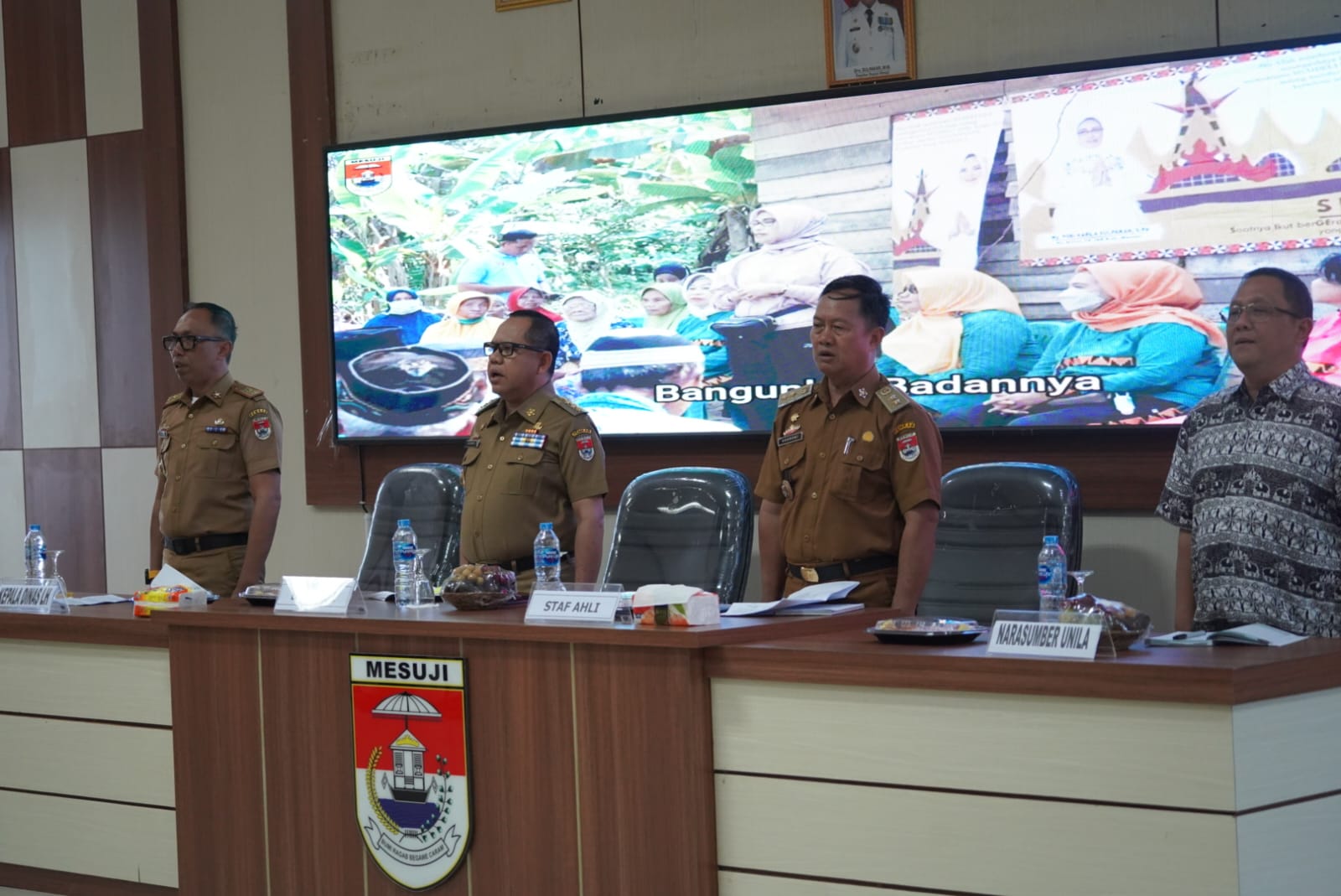 Hadir Dalam Kegiatan Tersebut Kajari Mesuji Atau yang Mewakili, Kapolres Mesuji atau yang mewakili, Dandim Tulang Bawang atau yang mewakili, Kepala OPD Kabupaten Mesuji, Camat Sekabupaten Mesuji, Tim Ahli Dari Universitas Lampung dan Tamu Undangan.(mintarso)