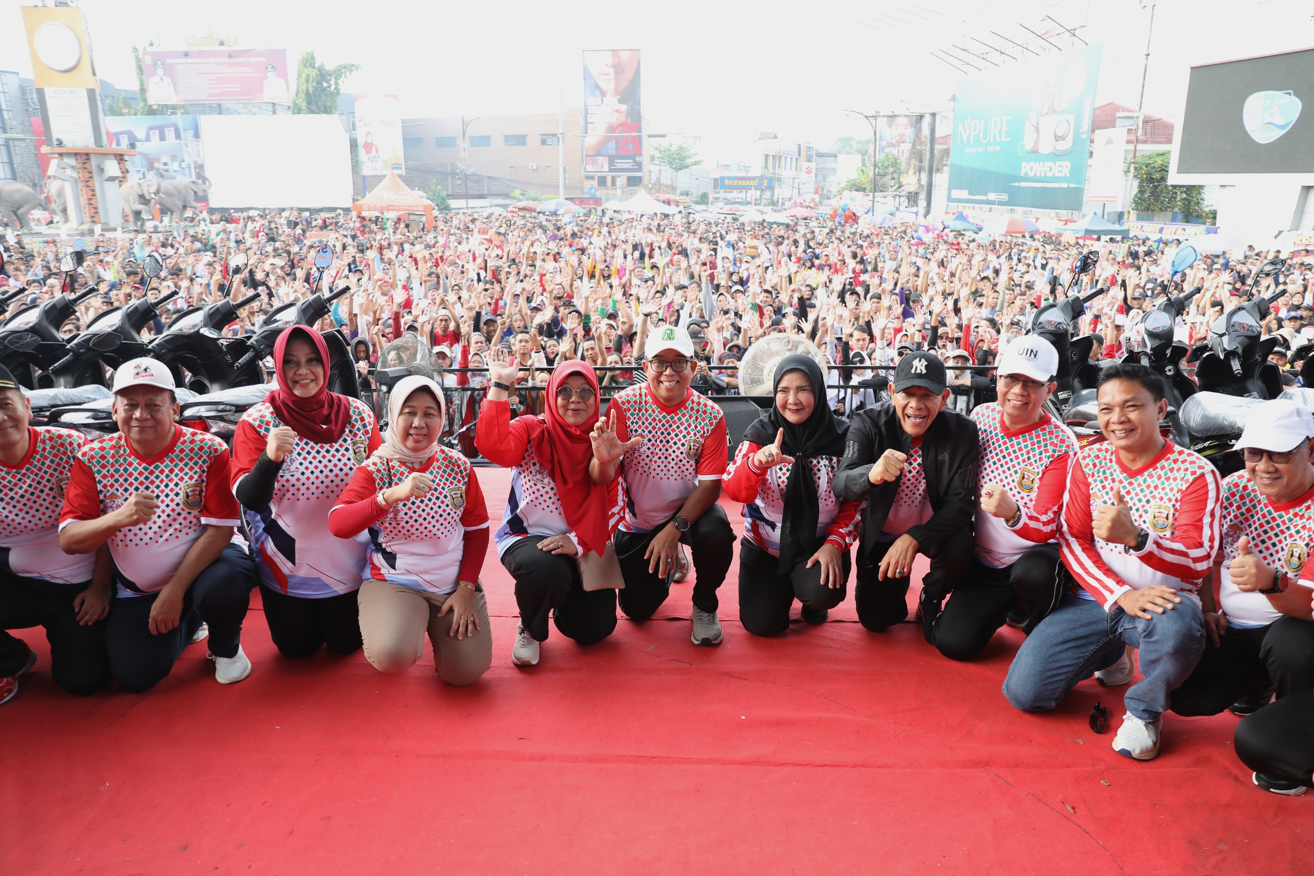 Pj. Gubernur Samsudin bersama Walikota Eva Dwiana Lepas Peserta Jalan Sehat dalam Rangka HUT Kota Bandarlampung ke-342