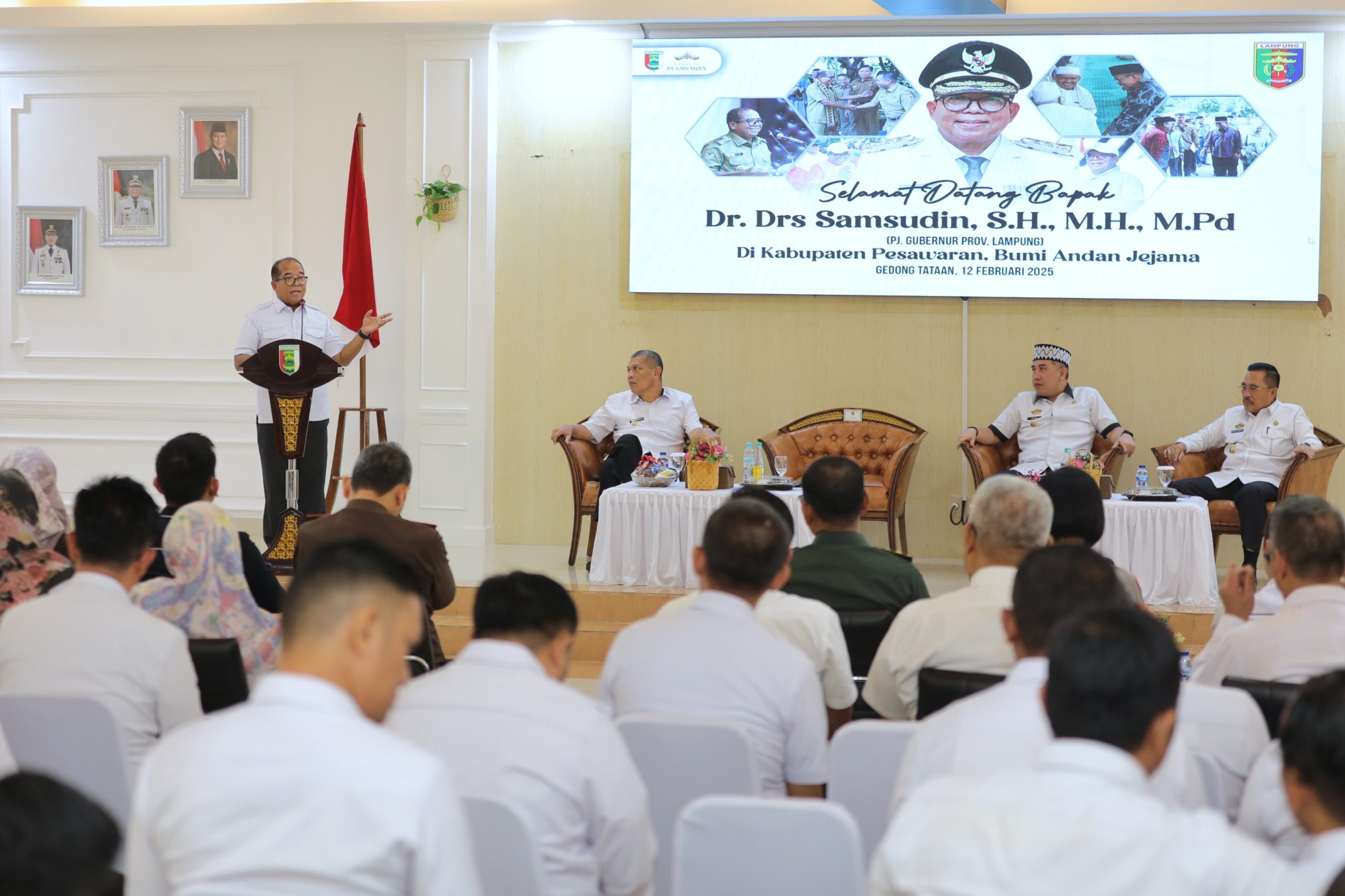 Bupati Pesawaran Dendi Ramadhona menyambut baik kehadiran Pj. Gubernur Samsudin beserta jajaran di Bumi Andan Jejama.