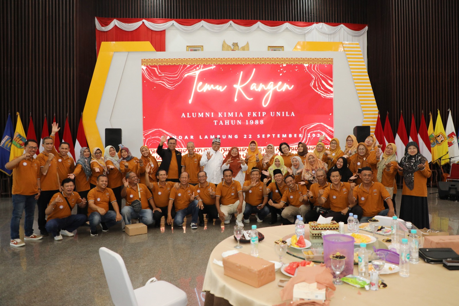 Pj. Gubernur Lampung Samsudin menghadiri acara Silaturahmi Alumni Kimia Fakultas Keguruan dan Ilmu Pendidikan (FKIP) Universitas Lampung Angkatan 1988 di Aula Mahan Agung, Minggu (22/9/2024).