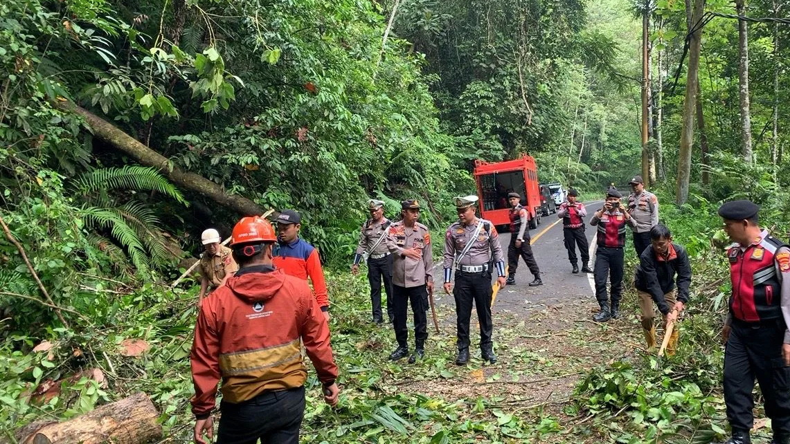 Menanggapi situasi ini, personel gabungan dari Polres Lampung Barat bersama TNI, BPBD, dan aparatur desa setempat segera diterjunkan ke lokasi untuk mengevakuasi pohon yang menghalangi jalan.