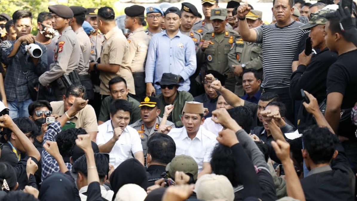“Saya senang sekali kalian semua hari ini bisa menyampaikan aspirasi dengan cara yang tertib, damai, dan dewasa. Ini adalah ciri-ciri masyarakat yang maju,” ujar Bupati Egi, disambut tepuk tangan peserta aksi.