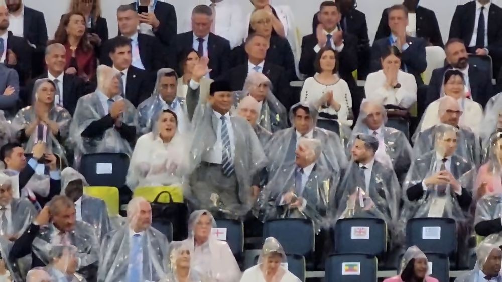 Acara dimulai dengan parade kontingen dari berbagai negara yang berpartisipasi, termasuk Indonesia. Dari tempat duduknya di tepi Sungai Seine, Prabowo berdiri saat kontingen Indonesia melintas. Meskipun hujan deras mengguyur Paris, Prabowo tetap semangat dengan mengenakan jas hujan transparan dan melambaikan tangan kepada para atlet dan kontingen Indonesia. “Indonesia!” seru pemandu acara saat memperkenalkan kontingen Indonesia.
