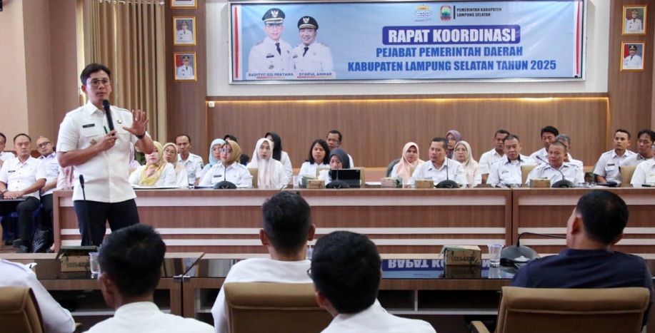 Gantanews.co, Lampung Selatan — Pemerintah Kabupaten (Pemkab) Lampung Selatan menggelar rapat koordinasi bulanan di Aula Krakatau, kantor bupati setempat, Rabu (10/9/2025). Rapat yang biasanya hanya diikuti pejabat eselon II kali ini digelar dalam dua sesi, dengan melibatkan hingga pejabat eselon IV yang membidangi perencanaan.