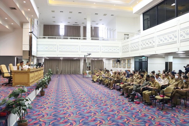 Hadir dalam rapat Sekertaris Daerah, para Staf Ahli, para Asisten, Kepala Badan, Kepala Dinas, Kepala Biro, dan undangan yang telah ditentukan. (Dinas Kominfotik Provinsi Lampung)