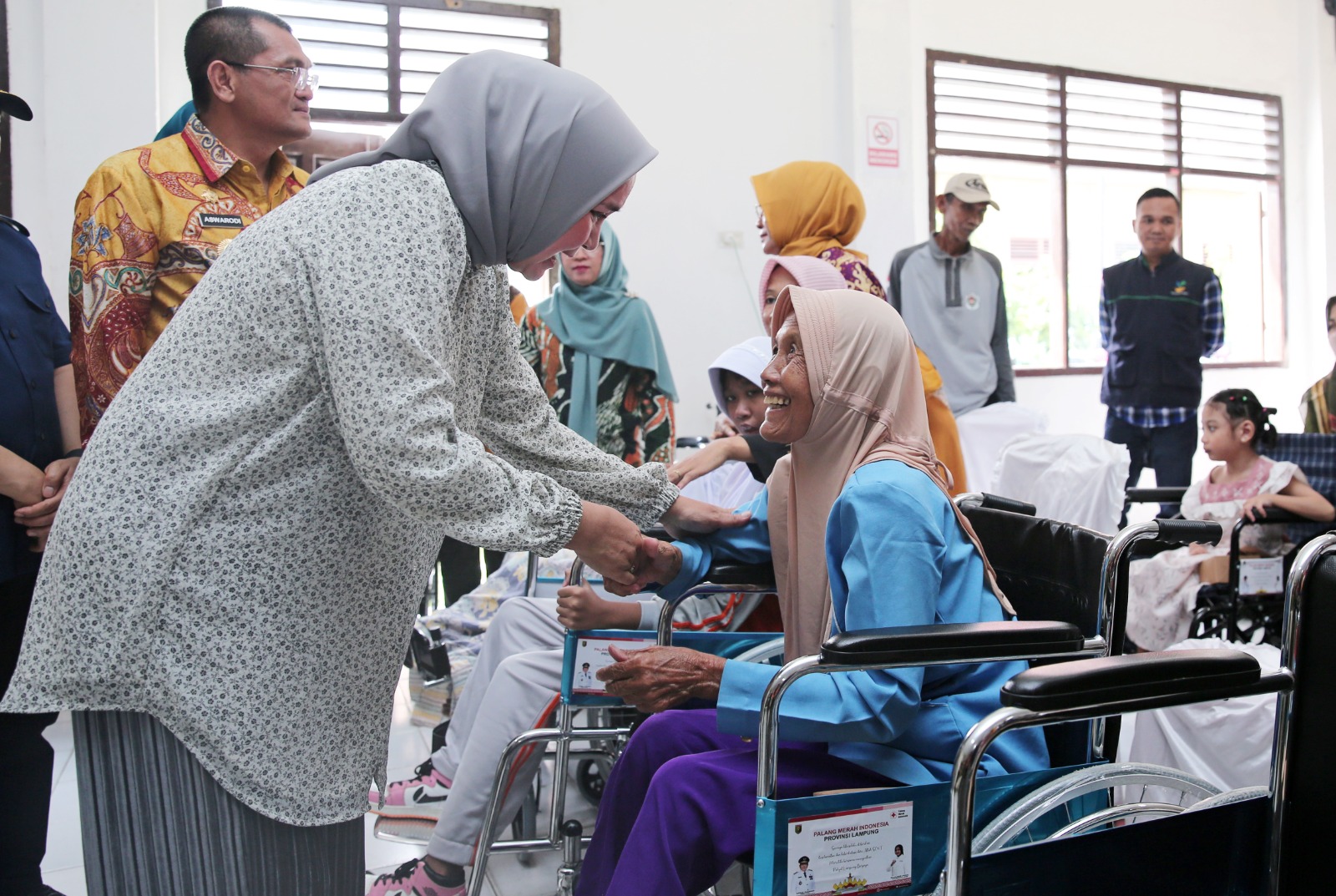 Ibu Riana menyampaikan bahwa kehadirannya dalam kegiatan ini untuk menyerahkan tanda sayang dari Gubernur Lampung Arinal Djunaidi kepada para penerima, sebagaimana salah satu program kerja Gubernur Lampung yakni memberi perhatian kebutuhan dasar bagi masyarakat yang ada di provinsi Lampung dan pemenuhan hak-hak para penyandang disabilitas.