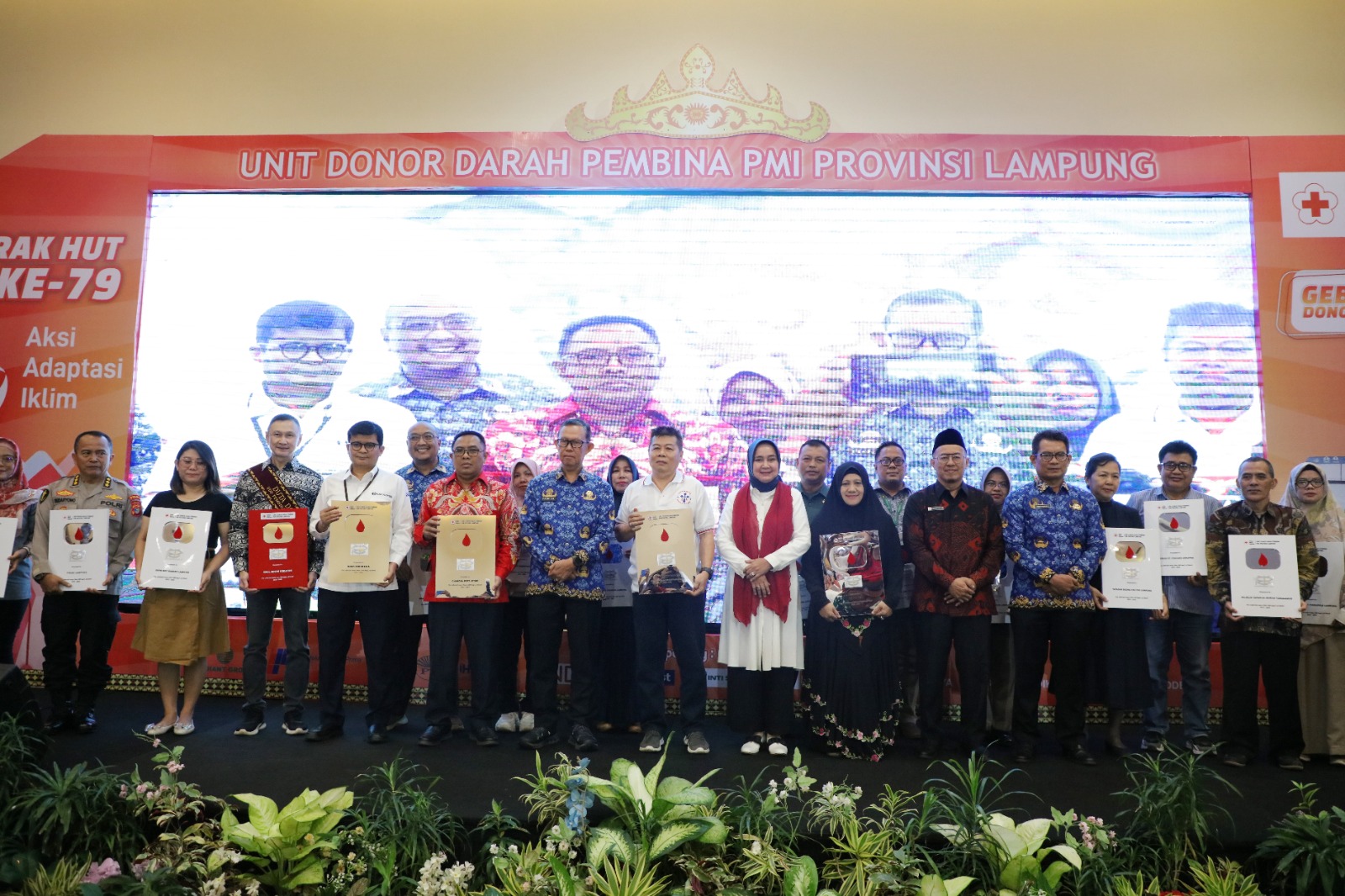 Pada acara ini, PMI juga memberikan penghargaan kepada  instansi yang berkontribusi dalam mendukung kegiatan UDD Pembina PMI Provinsi Lampung. (adv/rls)