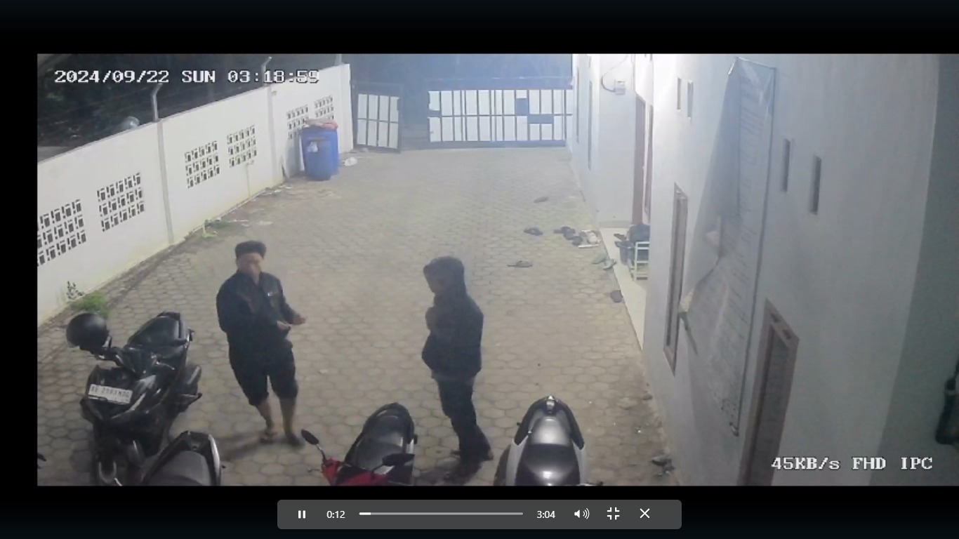 Pelaku pencuri sepeda motor target kedua bekerja lebih cepat. Setelah berhasil membuka sepeda motor berwarna hitam, ia langsung berjalan cepat menuju gerbang kosan membukakan jalan terlebih dahulu ke rekannya yang akan mengeluarkan sepeda motor target pertama berwarna merah.