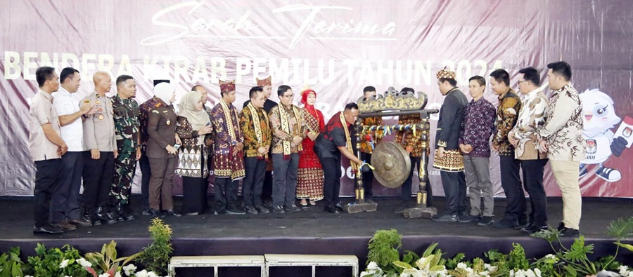 Tiba di Lampung Selatan, Bendera Kirab Pemilu 2024 Diserahkan Ketua KPU Pesawaran
