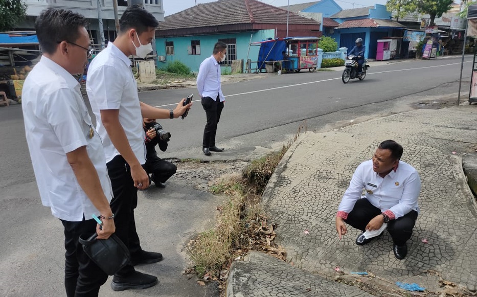 Ketemu Trotoar Yang Rusak Parah di Perjalanan, Bupati Nanang Langsung ‘Teduduk’