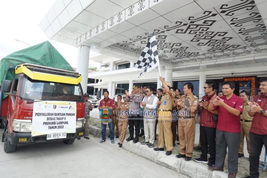 Bupati Pesisir Barat Serahkan Secara Simbolis Sekaligus Lepas Penyaluran Bantuan Pangan Beras
