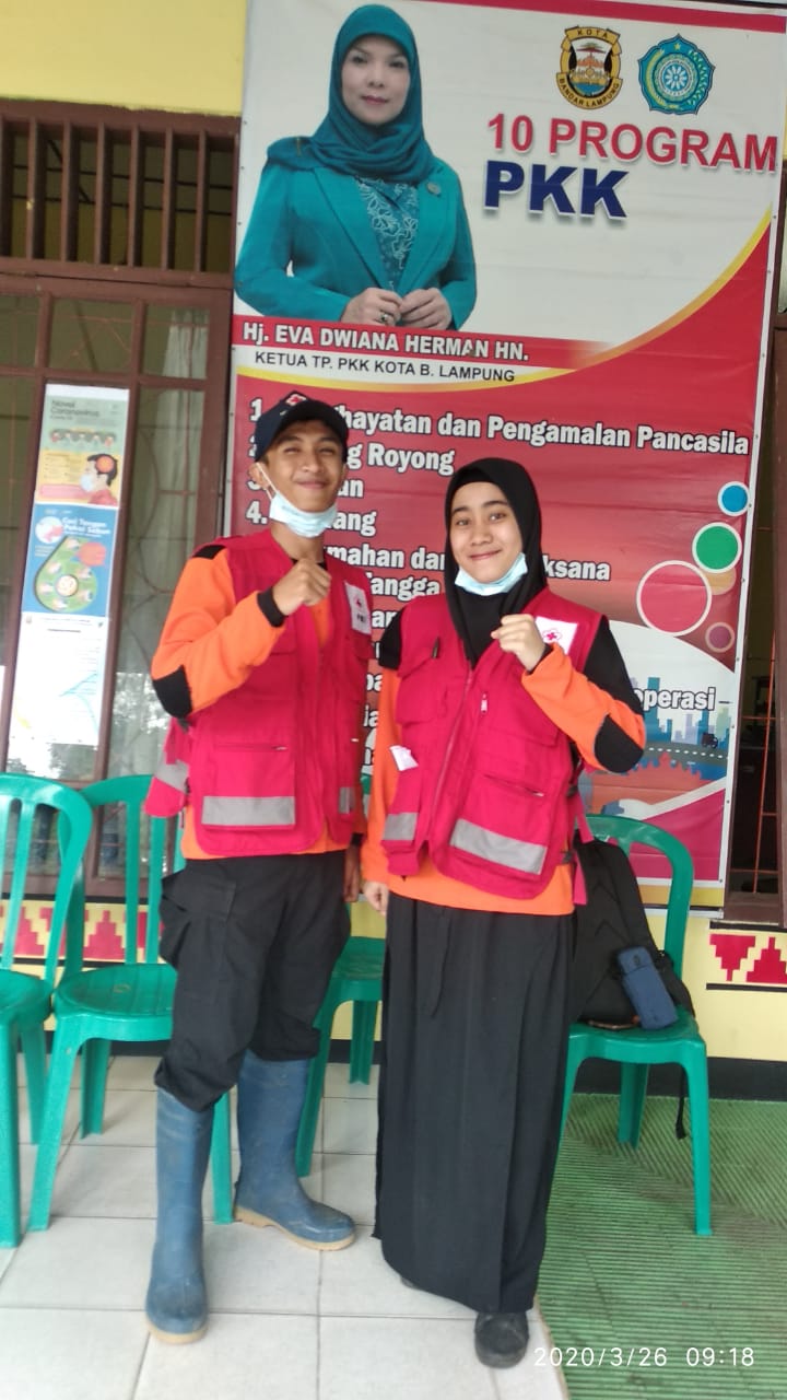 Antisipasi Covid-19, KSR PMI Unila Semprot Disinfektan Bersama BPBD