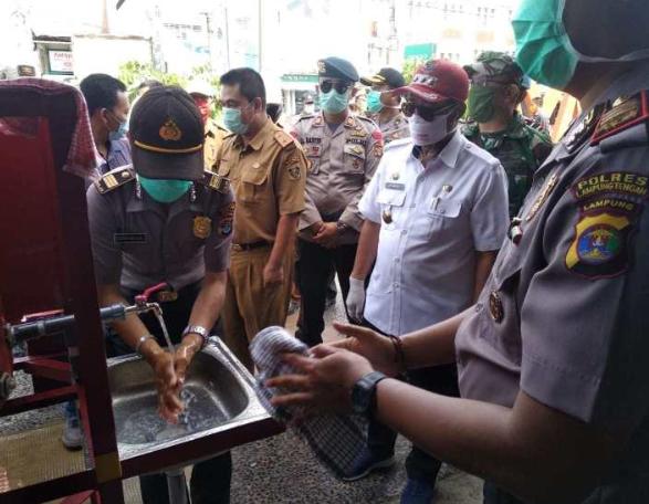 Cegah Corona, Bupati Lamteng Pasang Wastafel Portabel di Titik Keramain