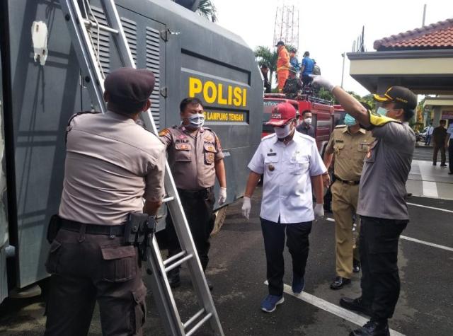 Bupati Lamteng Bersama Kapolres Lakukan Penyemprotan Disinfektan