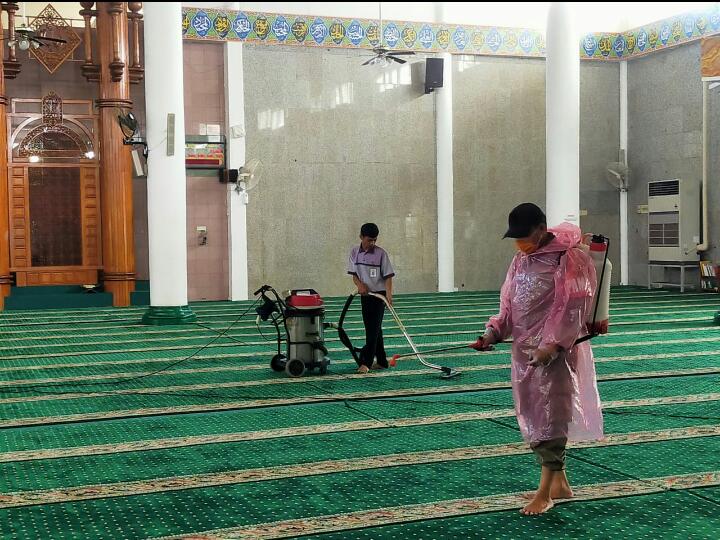 Disemprot Disinfektan, Masjid Al-Furqon Tetap Laksanakan Sholat Jumat