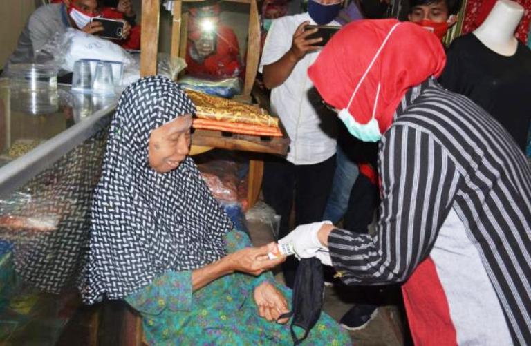 Keliling Pasar, Istri Bupati Lamteng Bagikan Masker Hingga Sabun Mandi