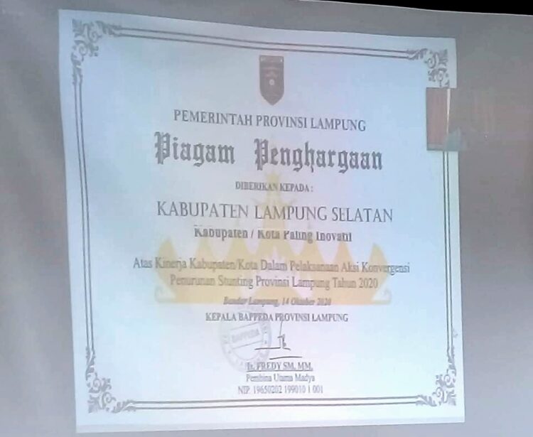 Dinilai Paling Inovatif, Lamsel Raih Penghargaan dalam Penanganan Stunting